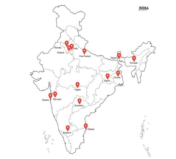 North: Delhi NCR, Sonipat, Kulana, Noida, Srinagar, Ludhiana, Lohari, Ghaziabad, Ambala, Haridwar, Faridabad, Panipat, Jhajjar,